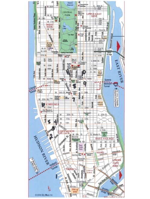 The map shows us moving Downtown to Uptown, West side to East side.